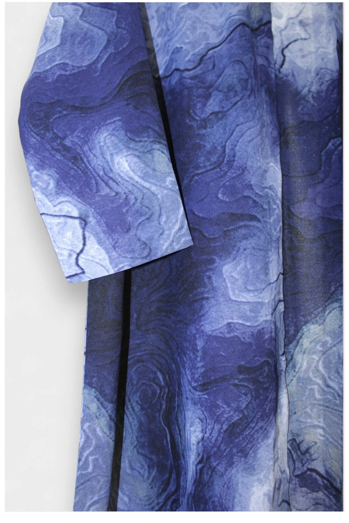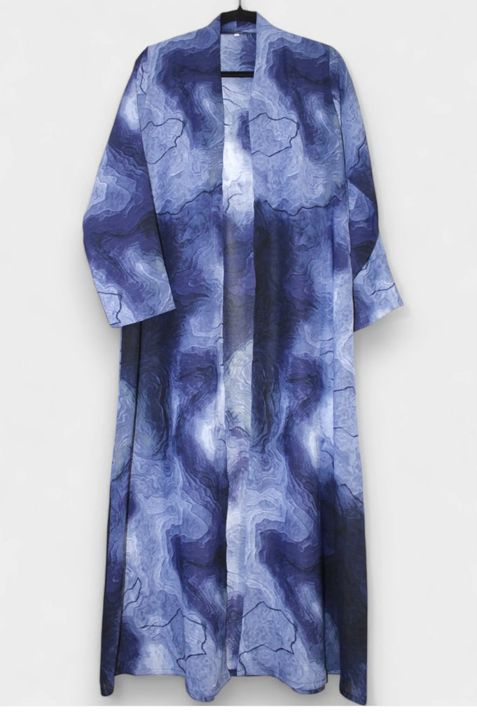 Embrace the striking elegance of ASRA, an abaya inspired by the vibrant hues of stormy seas and flowing ocean waves. Its rich blend of blue and purple creates a captivating look that radiates beauty and movement. Perfect for those who wish to stand out with a graceful yet bold style, ASRA combines vibrant color with comfortable design to elevate your wardrobe effortlessly.